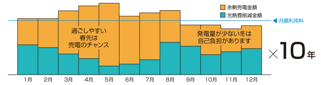 *サービス期間中は売電単価が約束されています。無償譲渡後も光熱費削減効果は続きます